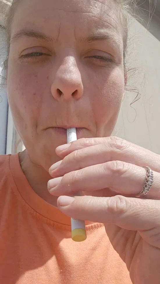 Riproduce l’inspirazione, l’espirazione e il movimento mano-bocca a cui il tuo cervello è abituato — mentre diffonde una miscela rilassante di vitamine B che favoriscono il recupero della dopamina e riducono il desiderio.